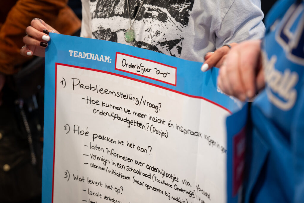 Hoewel het vanuit de gemeente lijkt alsof iedereen hier vandaag vrijwillig aanwezig is, blijkt dit na een rondvraag onder de studenten niet geheel waar: er geldt ‘gewoon’ een aanwezigheidsplicht. Na de opening waaieren de studenten uit over de in totaal elf werkgroepen. Twee meisjes vallen elkaar in de armen als ze erachter komen dat ze in dezelfde groep zitten. In de ene werkgroep heerst meer enthousiasme dan de andere. Elke werkgroep heeft een begeleider vanuit de gemeente, vanuit de gemeenteraad dan wel vanuit de griffie, het ondersteunde orgaan van een gemeenteraad. Jongerenwerkers vallen ook onder deze groep begeleiders. Zij stroomlijnen de gesprekken, die beginnen met een woordweb en vervolgens moeten uitmonden in een daadwerkelijke oplossing. Aan het einde van de dag moet per groep een ideeënkaart liggen met daarop een stappenplan naar de uiteindelijke oplossing.