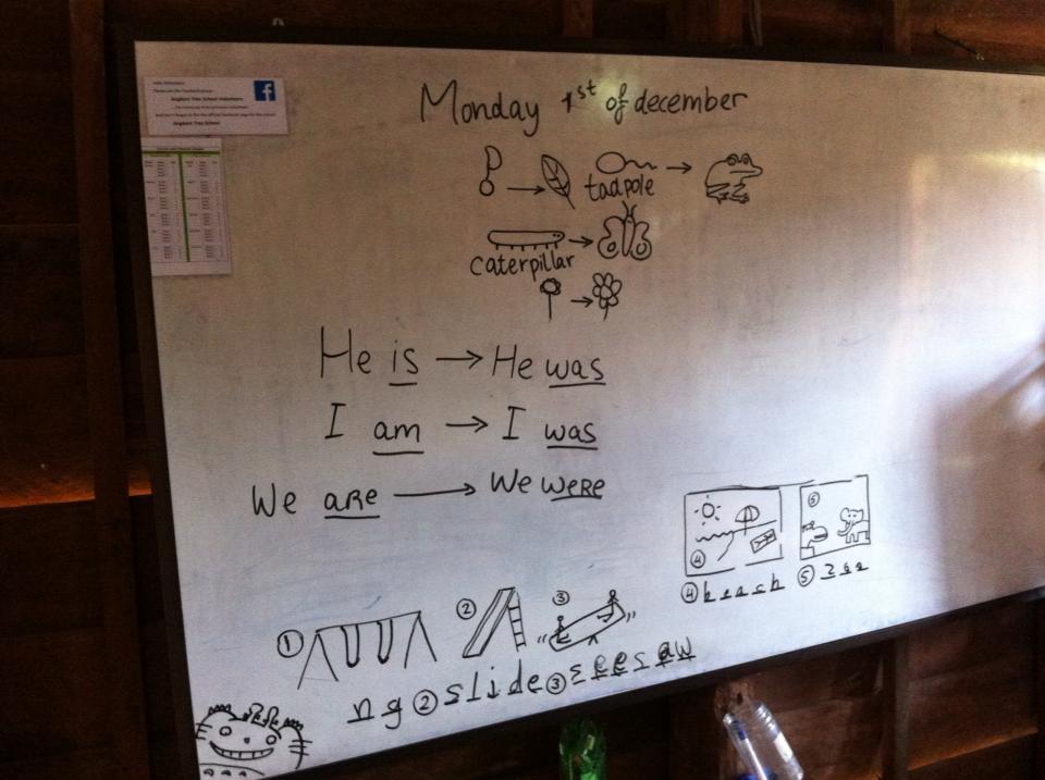 Ik ben nu in Cambodja. Gemiddeld 31 °C, dus douchen kan je de hele dag door. Ik geef Engels op een klein schooltje bestaande uit anderhalf klaslokaal, Angkor Tree School genaamd. ’s Ochtends hebben we 50 leerlingen, ’s middags iets minder. Het dorpje ligt op een paar kilometer van Siem Reap en Angkor Wat, dat bekend is om z’n prachtige Khmer tempels. Behalve dat ik lesgeef leer ik zelf ontzettend veel over de Cambodjaanse cultuur. Ik denk dat vrijwilligerswerk doen de beste manier is om met locals in contact te komen. Twee keer per dag ben ik bij Sokhom thuis: de oprichter, ‘directeur’ en enige leraar van de Angkor Tree School. We zitten dan op de grond met zijn vrouw, hun baby en soms ook wat leerlingen uit de buurt en eten rijst met soep en groenten. Sokhom vindt het geweldig om Engels te praten. Twee keer zijn we ’s avonds de stad ingegaan om iets te drinken in een cafeetje.