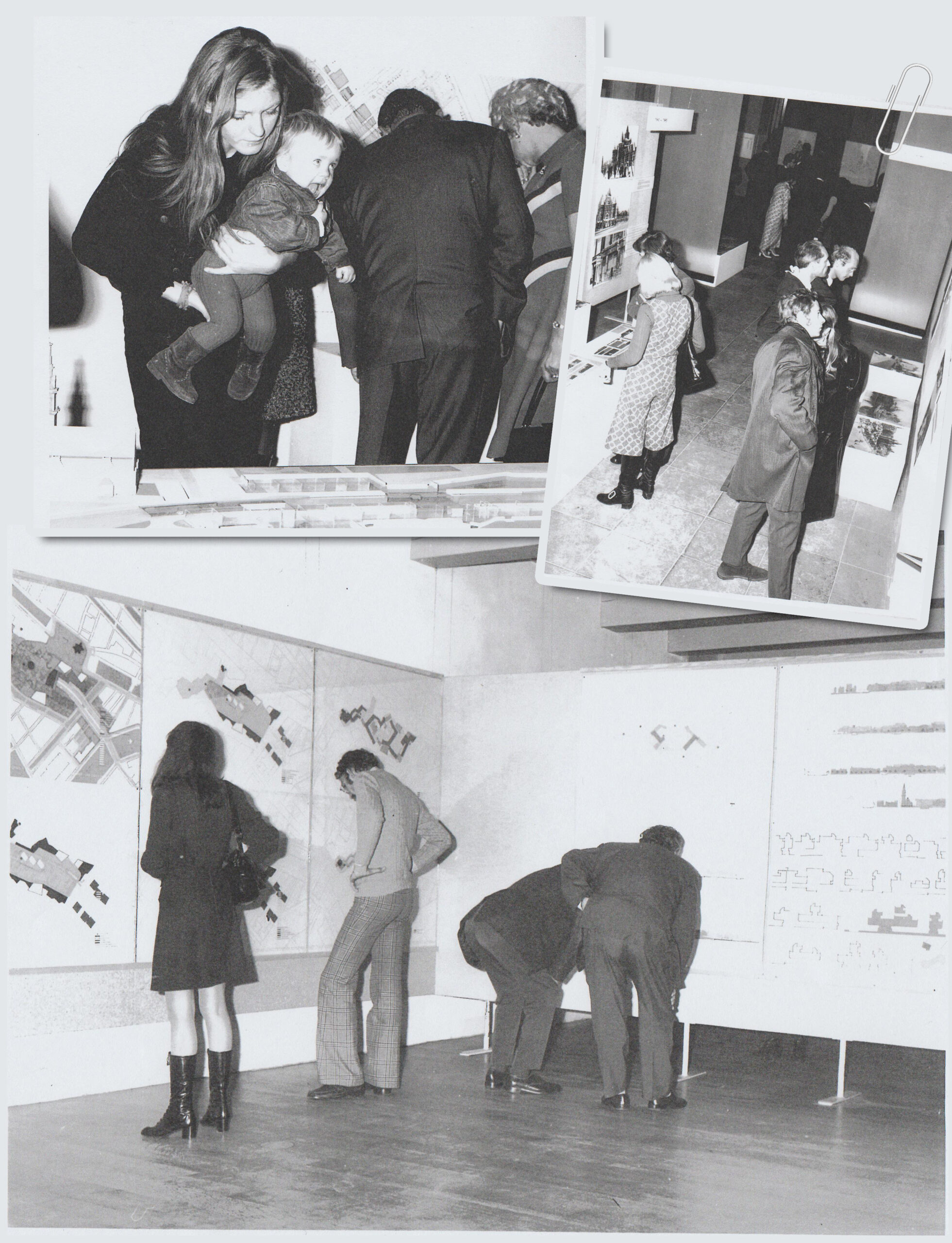 Het is november 1970 als in het Amsterdams Historisch Museum een tentoonstelling te zien is over de vernieuwing in de binnenstad, of nog specifieker: de Nieuwmarktbuurt. Op verschillende tekeningen, maquettes en gemanipuleerde foto’s kunnen Amsterdammers zien hoe architecten door de jaren heen hun ideeën voor de buurt hebben vereeuwigd. Van gedempte grachten tot vierbaanswegen en van kantoorgebouwen tot de metro. Op dat moment is de Oostlijn al in aanbouw en wordt het pad dat de metro onder de Nieuwmarktbuurt moet afleggen, bovengronds steeds zichtbaarder.