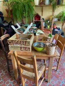 Ook draagt iedere bewoner bij via een werkgroep, kleine groepen die verantwoordelijk zijn voor onderdelen als financiën, of de tuin. De keuze is vrij: aansluiten bij een thema waarin je al thuis bent, of juist iets nieuws leren. Zo wordt de gemeenschap niet alleen draaiende gehouden, maar groeit ook ieders kennis en betrokkenheid.