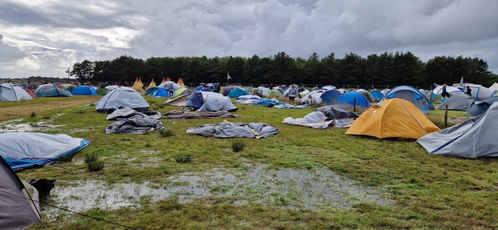 Het bewustzijn van haar eigen sociaalmaatschappelijke context lijkt er zo wel te zijn. Hoe dat voelt? Misschien als een welkome geruststelling, een klopje op de schouder. Toch voel ik ook ongemak. Zonder een perskaartje was ik hier niet geweest, en tegen al het uitgebreide kampeergerei van mijn medebezoekers steken mijn opgooitentje en bijgevoegde dop-loze luchtbed schraal af. Ik betrap mij erop eerder te voelen als een binnendringer dan als een thuiskomer.