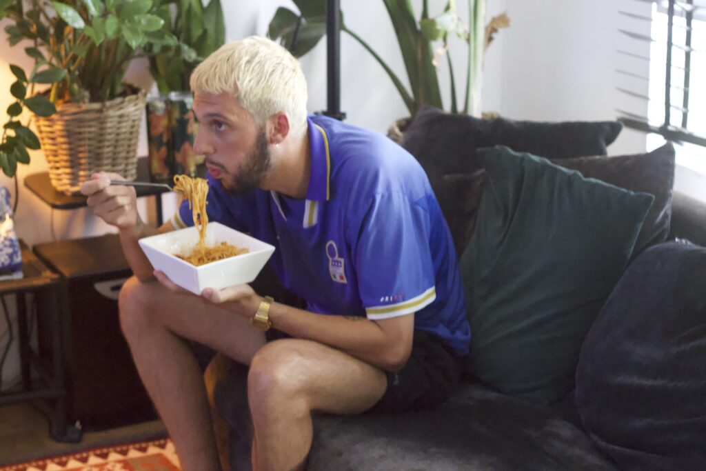 Het eerste fluitsignaal klinkt en de sfeer slaat om. Zo ontspannen als Joe de pasta in elkaar zette, zo gespannen eet hij hem nu op. Hij draait de spaghetti professioneel om zijn vork en richt zijn ogen strak op de televisie. Maar dan. Nog voordat zijn bord leeg is; een voorzet van Trippier die bij een totaal vrijstaande Luke Shaw uitkomt. Bam! Het Italiaanse net bolt. Stilte.