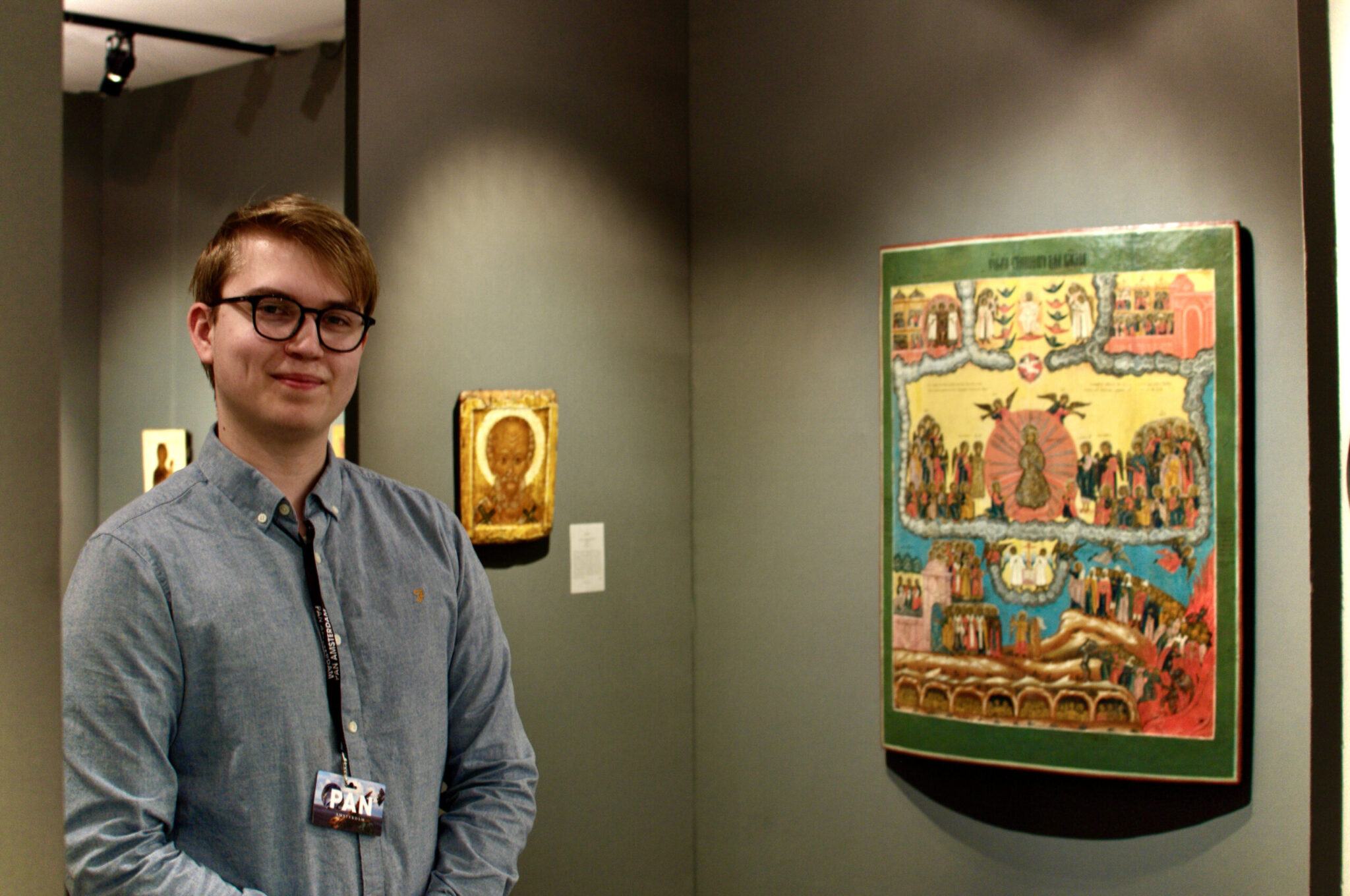Binnen de stand leidt Justus je langs bijzondere ikonen die stuk voor stuk een boeiend verhaal vertellen. Ikonen zijn religieuze schilderingen op houten panelen. De werken die op de beurs hangen werden vroeger (rond 1800) getoond in Byzantijnse kerken. Een afbeelding van ‘Het Laatste Oordeel’ herinnerde mensen er bijvoorbeeld aan welke zonde zij beter niet konden begaan als ze niet in de hel wilden eindigen. Hoewel Justus gelovig is opgevoed, heeft hij dat naar zijn idee niet nodig gehad om ikonen te waarderen: “De een vindt ze mooi vanwege de religieuze achtergrond, de ander om het historische aspect of de ambacht.”