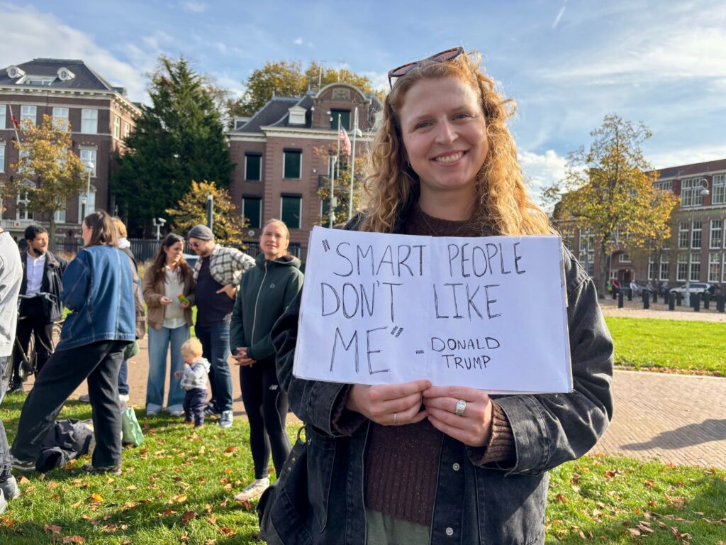 Hughes blikt tevreden terug op de demonstratie. “Vandaag hebben we een statement gemaakt: we staan solidair met iedereen in de VS en we buigen niet voor Trump. Ook in Nederland is dat belangrijk: we zien dat Trump’s retoriek de hele wereld overgaat en ook hier verschuift de politiek naar rechts. Er komen belangrijke verkiezingen aan, dus het is belangrijk dat iedereen opstaat en gaat stemmen bij de verkiezingen op 29 oktober.”