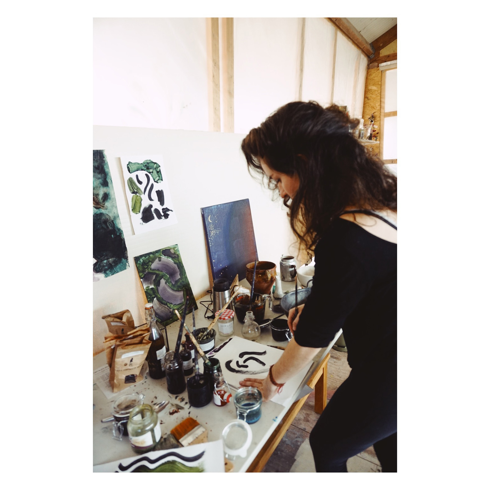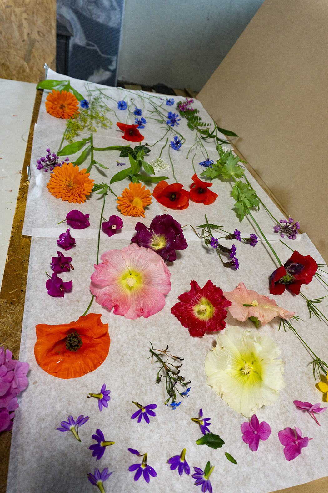 Het onttrekken van pigment uit planten en bloemen blijkt een arbeidsintensieve procedure. “De ene bloem los je op in olie, de andere plant moet lang pruttelen op een laag vuurtje.” Zo geven de wortels van de Rubia Tinctorum een dieprode kleur, staat de Cosmos Bipinnatus bekend om haar roze inkt en gebruik je de schil van een walnoot voor een donkerbruin pigment. Sophie grijnst en zegt dat ze zich af en toe een alchemist voelt.