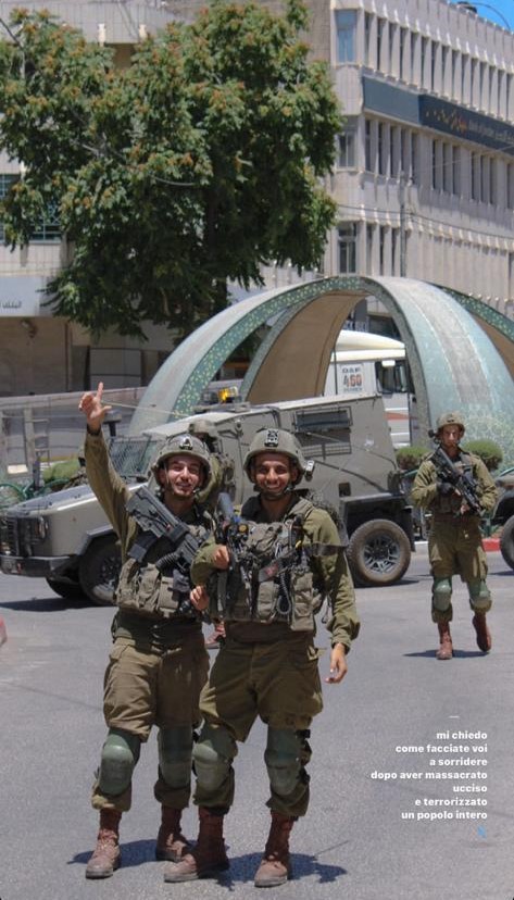 “Ik heb meegemaakt dat Israëlische soldaten door het gebied waar ik zat reden met tanks. Toen heb ik gezien hoe de agressie van hun geweldsmonopolie wordt ingezet. Ze joegen groepen mensen weg met geweren. Zomaar. Mijn huisgenoot had haar camera mee. De soldaten kregen door dat ze foto’s aan het maken was, en toen gingen ze poseren. Gingen ze met een peace teken staan en in hun andere hand hadden ze een geweer vast, van: “kijk ons nou.”’