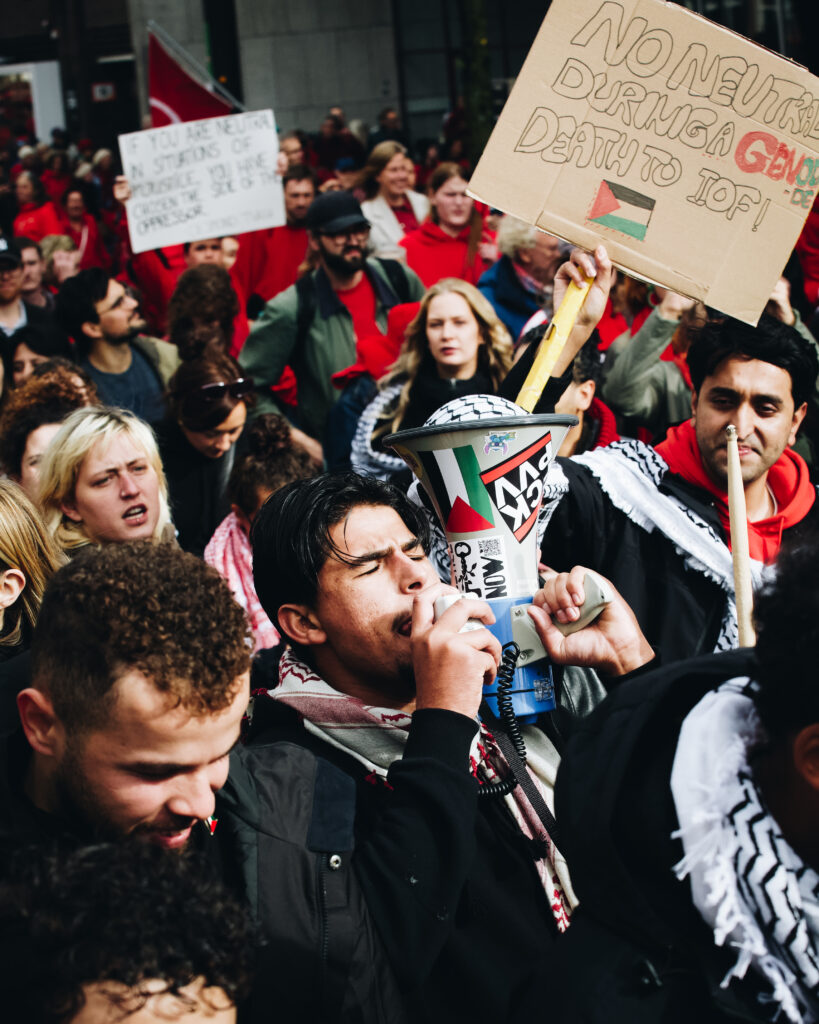 ‘Free Palestine’, ‘Ceasefire now’ en ‘Death to the IOF’