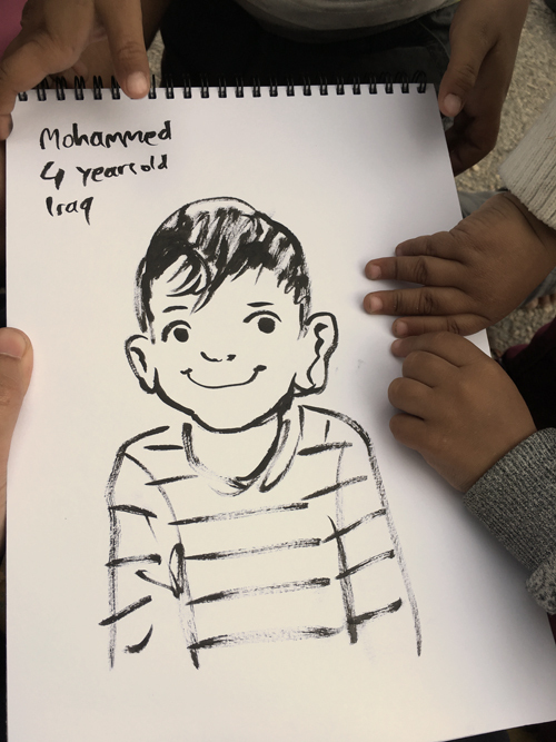 Met papier en potlood liep Aimée een week rond in het vluchtelingenkamp, tekende ze alles wat ze zag en voerde ze veel gesprekken. “Portretten tekenen is een magische manier om contact te maken met mensen.” Van iedereen die ze heeft gesproken, heeft ze een portret getekend. De portretten zijn, naast haar strip ‘De Wachtkamer van Europa’, ook in de tentoonstelling te zien. “Als je die mensen ontmoet en spreekt dan kan je er eigenlijk niks op tegen hebben dat ze naar Nederland komen. Als je hun verhalen hoort dan denk je: ‘Ja, natuurlijk ga je naar Europa’. Niet alleen hebben ze dat recht, maar ze hebben ook alle reden.”