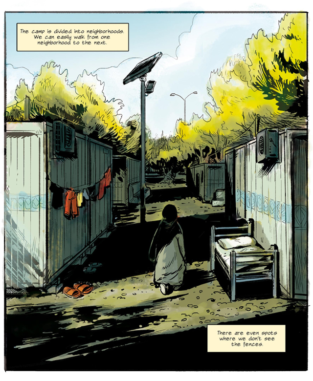 Als grafisch journalist kan Aimée een waardevolle inkijk geven in het leven van de bewoners van het vluchtelingenkamp. “Ik merk ook dat strips heel goed werken voor dit onderwerp. Het is moeilijk uit te leggen, maar heel veel van wat ik op Lesbos zie, is zo visueel dat je er eigenlijk geen tekst meer bij hoeft te zetten, dan vertelt het beeld alles al,” aldus Aimée.