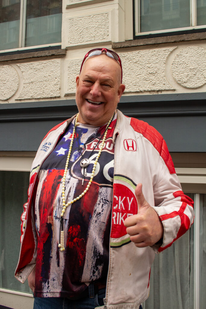 Een andere opvallende verschijning, genaamd Big Frankie, muziekman in hart en nieren, komt vandaag vooral zijn respect tonen. “Het is niet mijn muziek, dat zeg ik eerlijk. Maar het is wel een icoon.” Na De Nijs’ overlijden op 16 maart viel in de media een lofzang te bespeuren. De Nijs was een tieneridool, de eerste echte Nederlandse popster en een vaste waarde in de Nederlandse popmuziek. Daar kan Big Frankie zich goed in vinden. “De Nijs heeft veel betekend voor de Nederlandstalige muziekwereld. Ik heb respect voor dat soort mensen, die moeten we koesteren.” Big Frankie vindt het mooi om te zien dat er veel mensen zijn, volgens hem ook veel jongeren: “Muziek verbindt!”