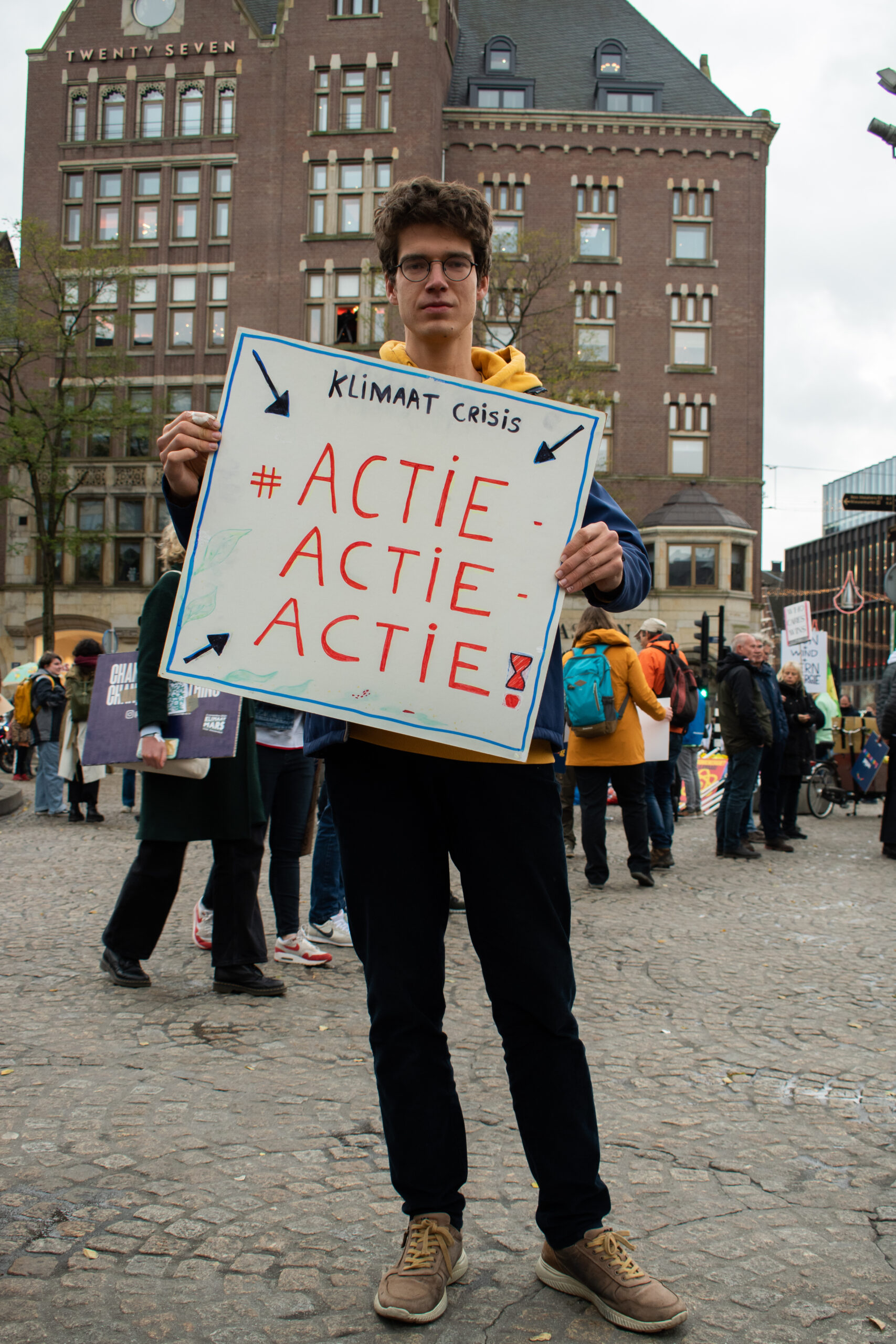 Zo’n veertigduizend mensen kwamen zaterdag 6 november bijeen tijdens de klimaatmars in Amsterdam, terwijl in Glasgow de klimaattop in volle gang was. Voor veel mensen reden om een protestbord te maken, om zo hun mening over het klimaat te uiten tijdens de demonstratie. Een aantal jongeren vertellen over de betekenis van hun bord en wat er volgens hen moet veranderen.