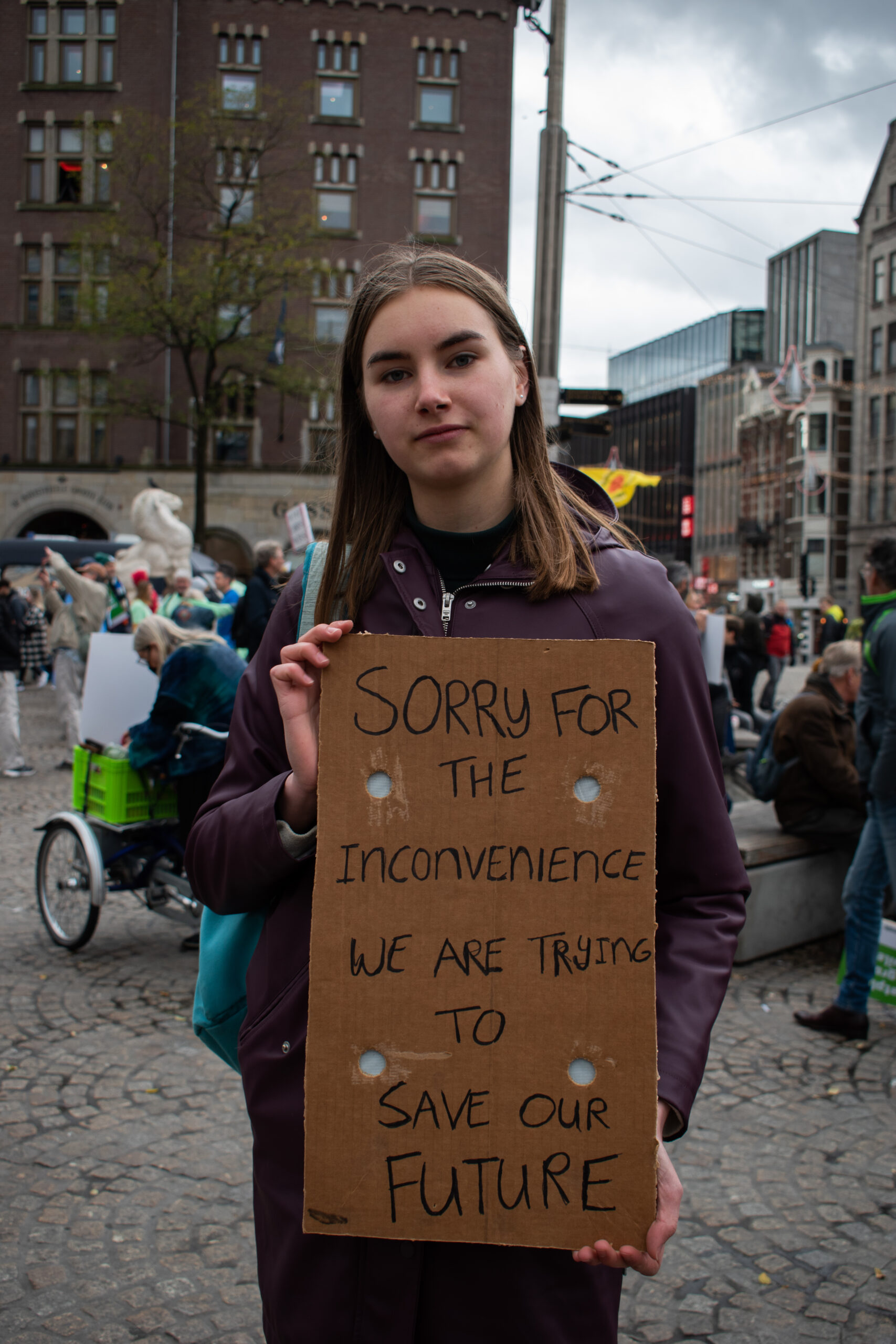 Aan protestborden geen gebrek tijdens de recente klimaatmars in Amsterdam. Redacteur Lena Folkers zoomde met een aantal demonstranten in op de betekenis van hun borden. ‘Misschien brengen we nu overlast en rumoer met dit protest, maar wel met een belangrijke reden.’